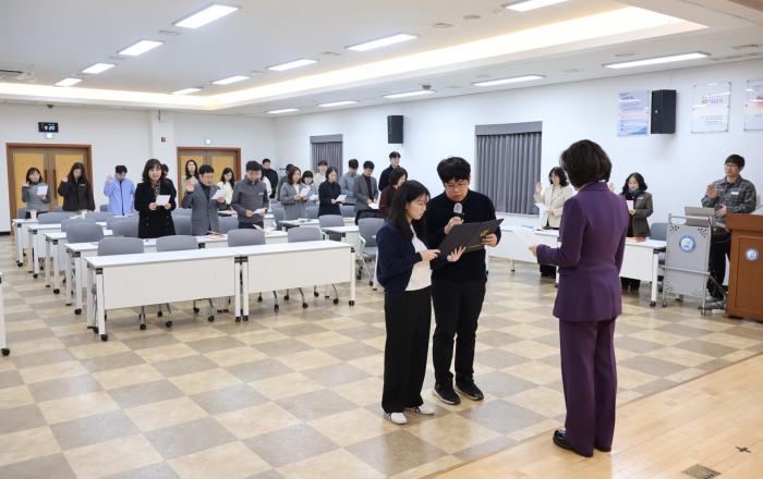 영주교육지원청(교육장 이용택)은 3월 3일(화) 교육장을 비롯한 전 직원이 참여한 가운데‘2026년 청렴실천 다짐식’을 개최하였다.이날 다짐식에서는 전 직원이 함께 청렴실천 서약서를 낭독한 후 서명하며, 법과 원칙을 준수하고 반부패 활동에 적극 참여할 것을 다짐하였다.