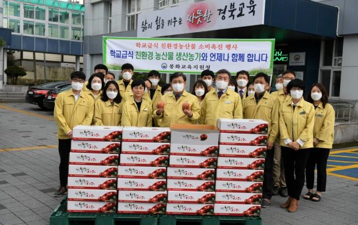 예천교육지원청(교육장 이승진)은 27일 학교와 교육지원청 교직원을 대상으로 학교급식 친환경농산물 소비촉진 행사를 개최했다.□ 이번 행사는 코로나19 확산으로 각급학교 개학을 연기함에 따라 친환경 농산물의 판로가 막혀 어려움에 처한 지역 재배 농가를 돕고 교
