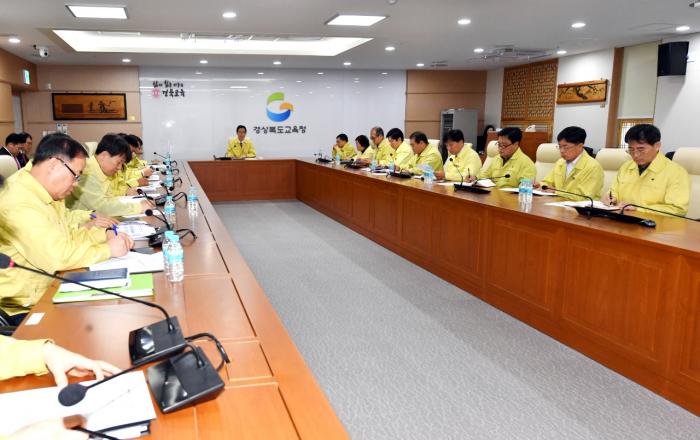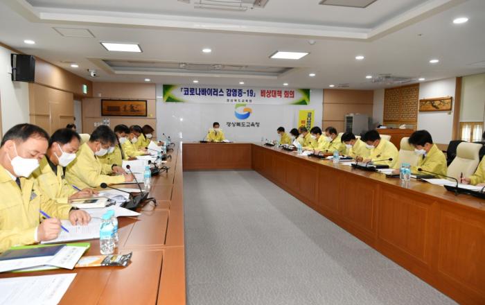 경북교육청(교육감 임종식)은 19일 경북 도내‘코로나19’확진자가 발생에 따라 비상대책반(단장 전진석 부교육감) 회의를 열고, 영상을 통해 23개 지역교육청 교육장과 본청 국ㆍ관ㆍ과장이 참석한 가운데 학교의 코로나19 추가 대책을 논의했다. 주요 논의 사항으로 본청,