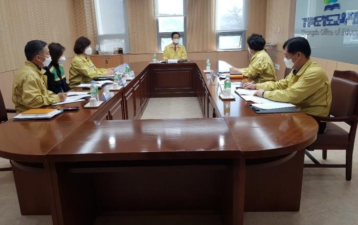 경북교육청(교육감 임종식)은 18일 경북 인근지역인 대구에서‘코로나19’확진자의 추가 발생으로 교육감 주재 긴급 확대 간부회의를 가졌다. 이날 확대 간부회의에서는 보건교사 미 배치교 간호사 인력 배치, 개학 첫 날 예방교육 실시, 봄 방학 중 외국 다녀온 교
