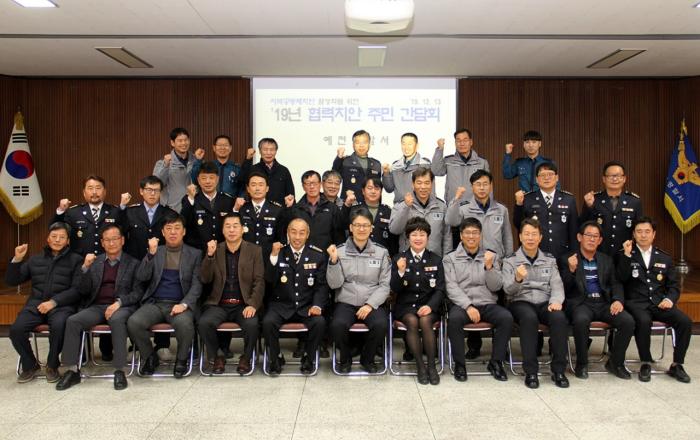 예천경찰서(서장 박재석)는 12월 13일 8개 생활안전협의회장·14개 자율방범대장 등 40여명과 지역공동체 치안 활성화를 위한 간담회를 개최하여 ’19년도 치안성과 및 활동과 ’20년도 주요 추진계획에 대한 설명회를 가졌다. 그리고 호명파출소 자율방범대에 대하여 도내