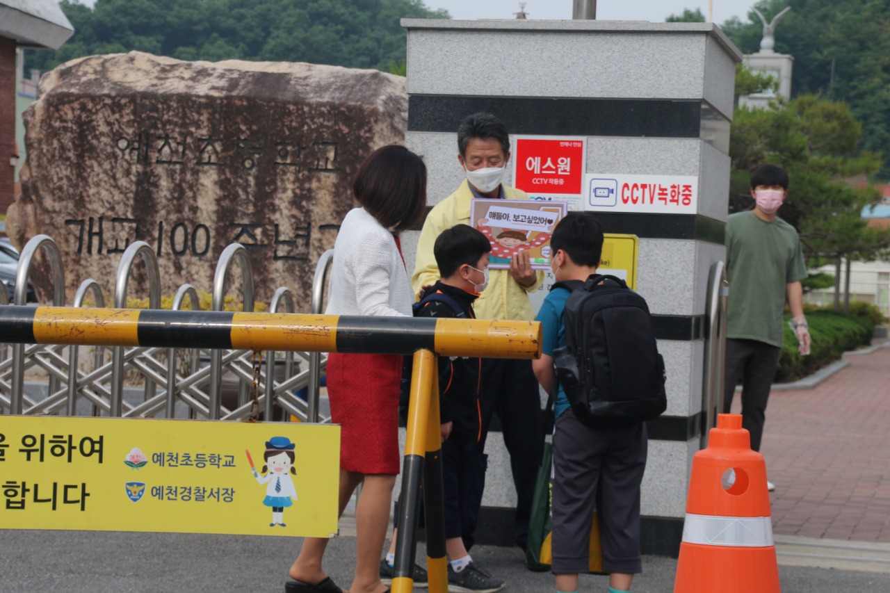 권명숙 예천초등교장은 "오늘 등교한 아이들을 비롯해 전체 학생이 코로나19에 불안해하지 않고 수업에 임할 수 있도록 만전을 기하고 있다.“ "또 각 학급마다 손소독제,책상소독제,비상시 착용마스크,체온계,안면실드,투명캡마스크등 필요한 모든 것을 비치해놨고 마스크를 착용한 교사들의 목소리가 학생들에게 잘 전달될 수 있도록 휴대용 마이크도 구비했다"고 말했다.