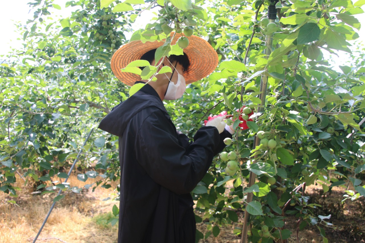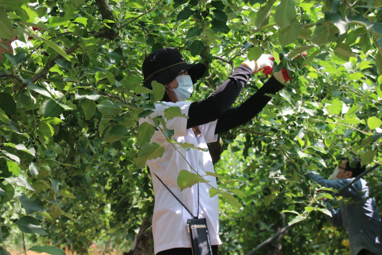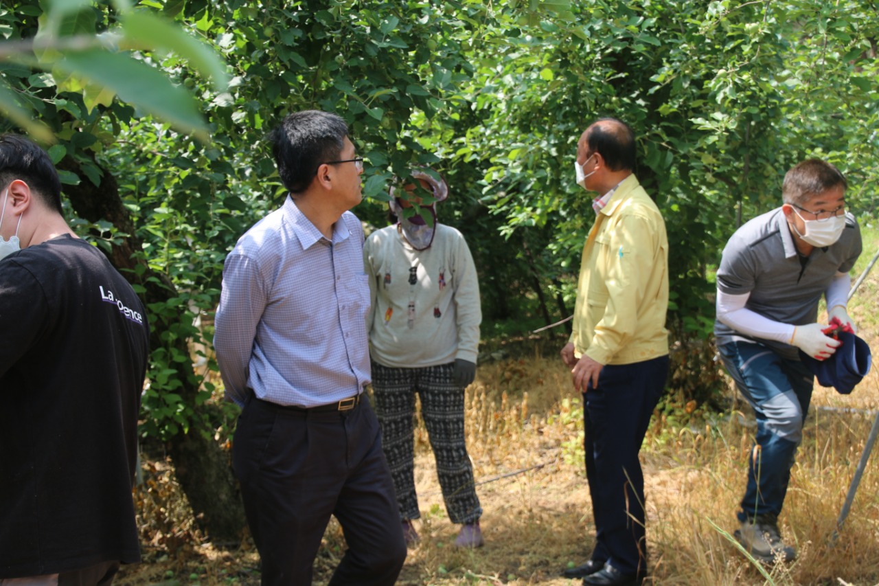 생활 속 거리두기 기간 중 추진된 이번 봉사활동은 열매 솎아주기 작업에 대한 사전교육과 함께, 마스크 착용·손 소독·작업자 간 안전거리 유지 등 코로나19 방역 안전수칙을 지키는 가운데 진행됐다.