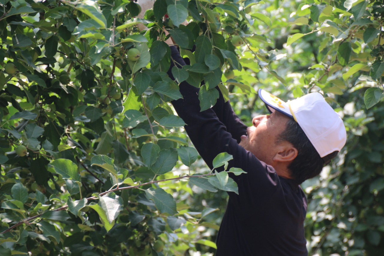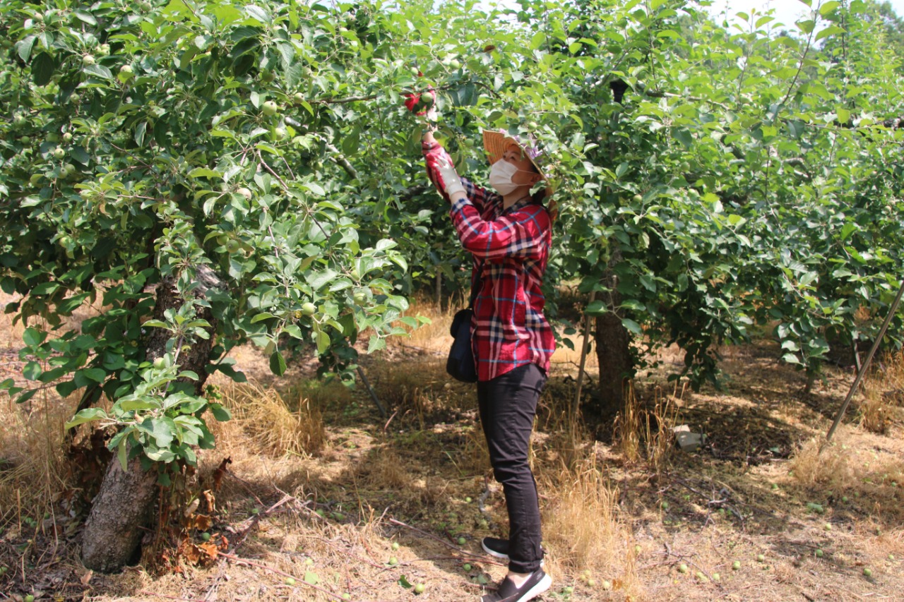 사과나무 열매 솎아주기(적과작업)는 품질 좋은 사과를 얻기 위해 필요한 작업으로, 제때 작업이 이루어져야 상품성 있는 좋은 품질의 사과를 얻을 수 있다.