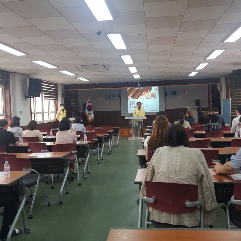경상북도 예천교육지원청(교육장 이승진)은 5일 3층 대회의실에서 관내 유·초·중학교 행정실장을 초청하여 2020년 상반기 공직자 청렴교육을 실시했다.