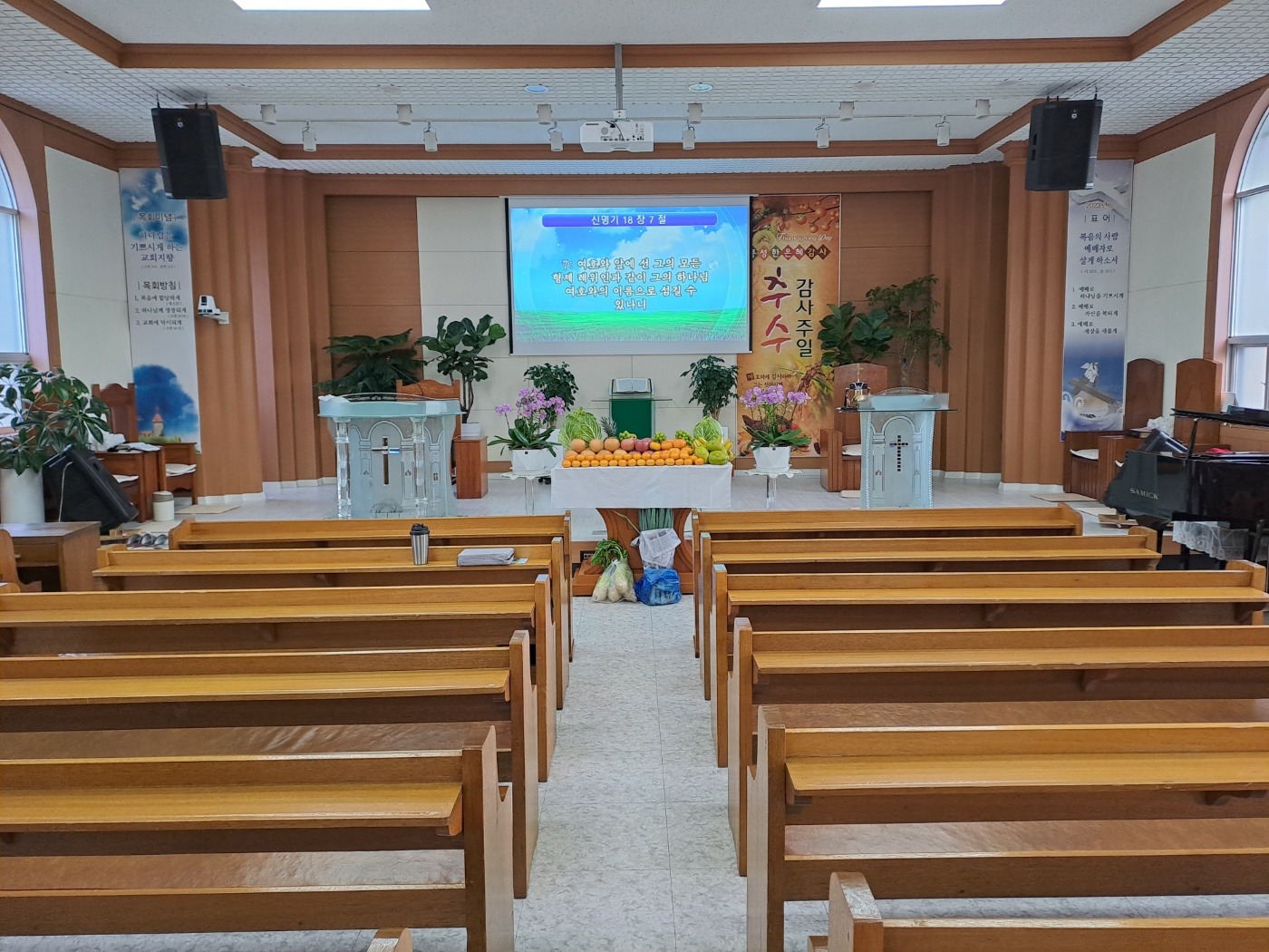 [채석일 기자]추수감사절을 맞은 예천 관내 교회 뿐아니라 국내 대부분 교회가 추수감사 주일예배를 드렸다.