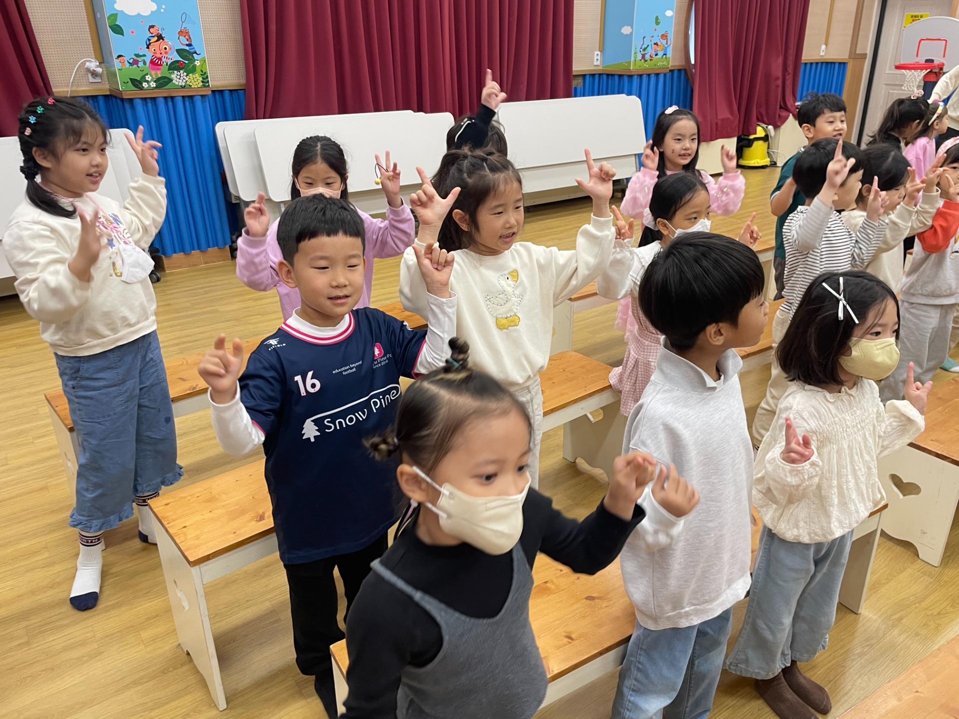 새벗유치원(원장 우수경)은 10월 22일(화) 3층 체육실에서 유아 119명을 대상으로 마술 인형극 ‘오리 한 마리가 살았는데’를 개최했다.