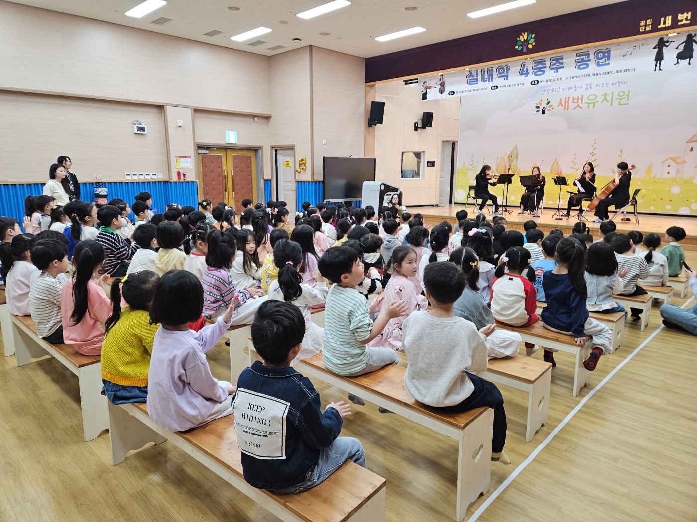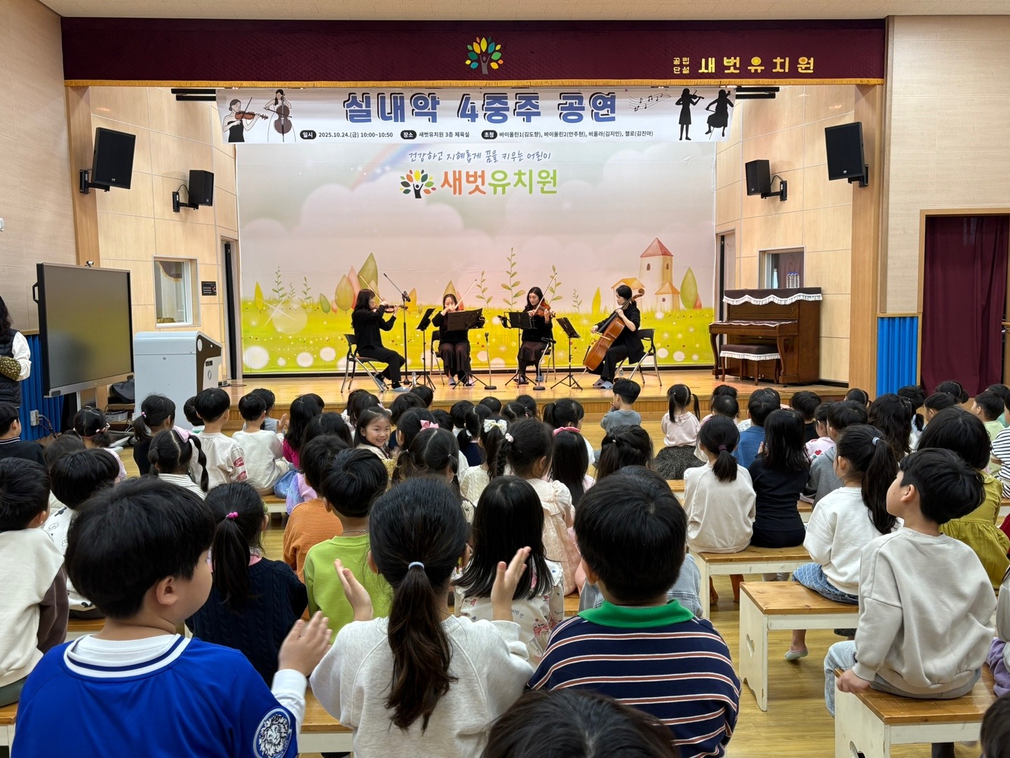새벗유치원(원장 우수경)은 10월 24일(금)에 3층 체육실에서 유아 122명을 대상으로 실내악 4중주 공연을 개최했다.