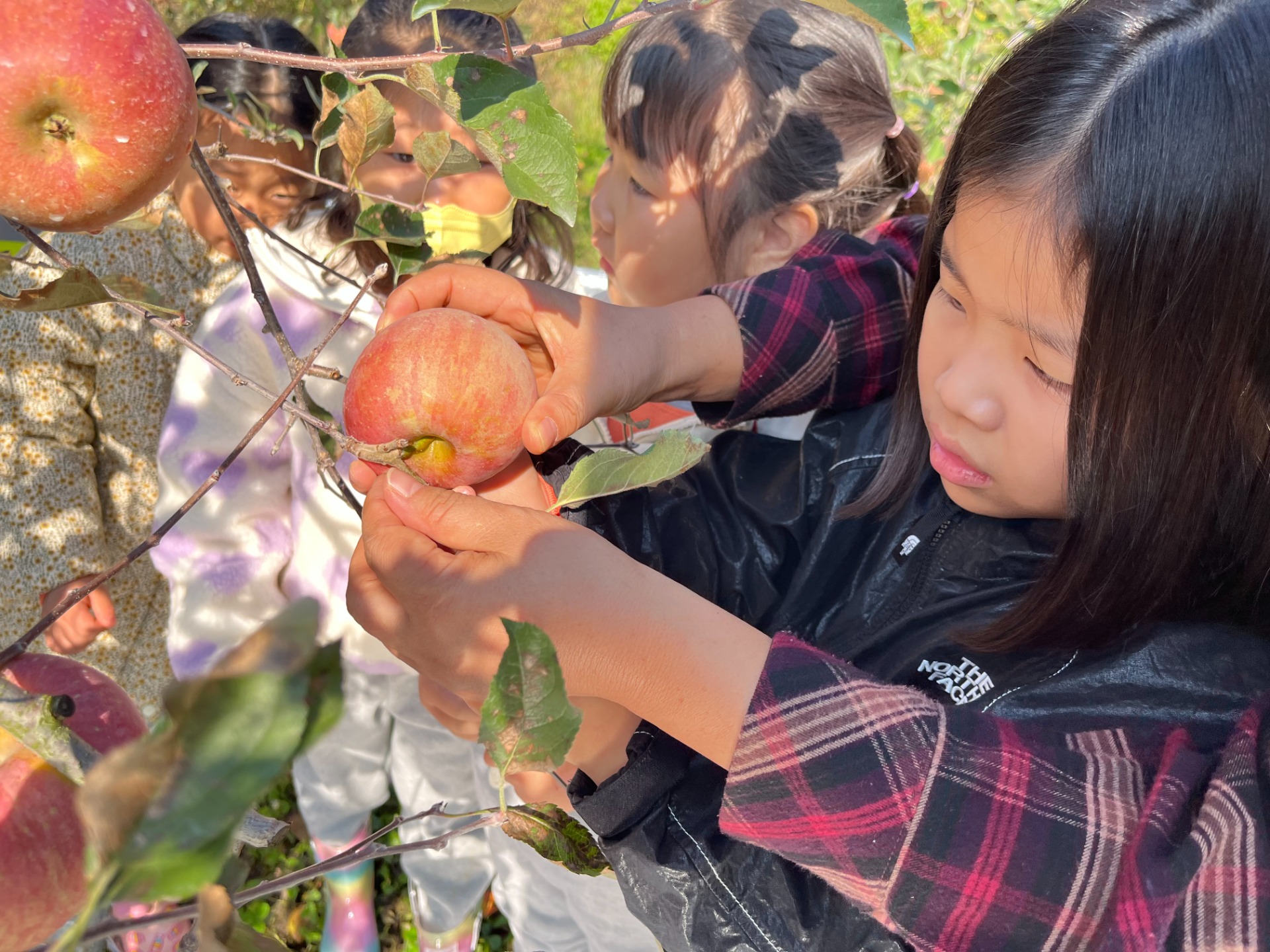 체험을 앞서 유아들은 사과의 성장 과정에 대해 알아보는 시간을 가지며, 사과의 생김새와 꽃, 열매에 대해 이야기를 나누었다. 농장에서는 사과를 직접 수확하고, 수확한 사과와 함께 사과파이, 사과주스를 맛보며  생생한 자연 체험을 즐겼다.