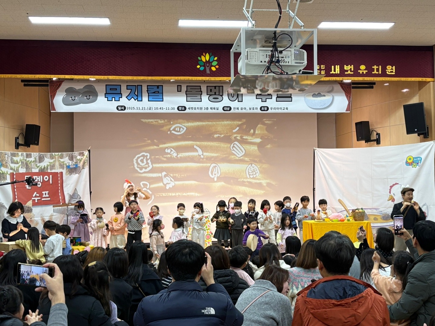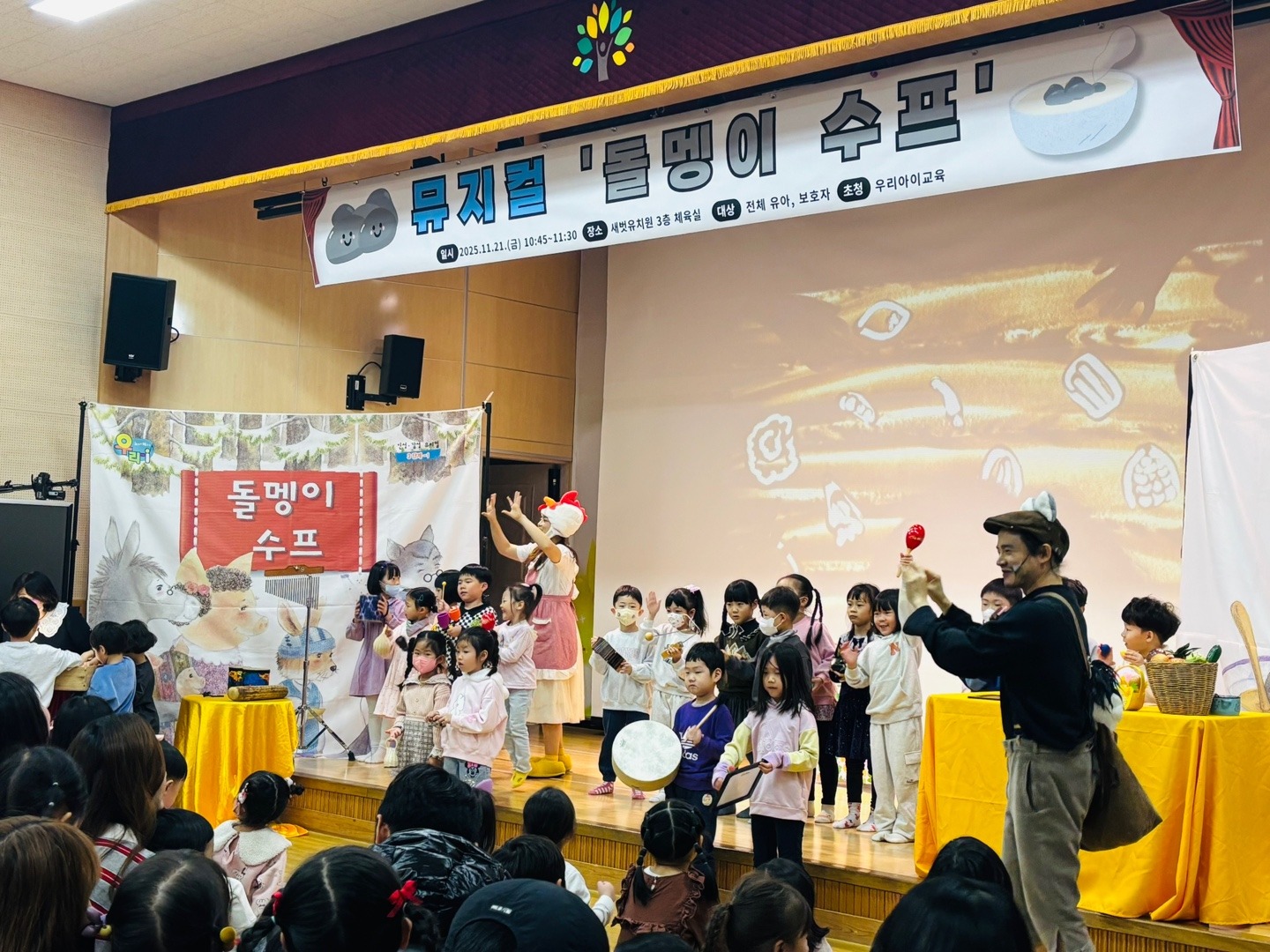 새벗유치원(원장 우수경)은 11월 21일(금) 3층 체육실에서 유아 122명과 사전에 신청한 보호자를 대상으로 가족과 함께하는 뮤지컬 공연 관람을 진행하였다.