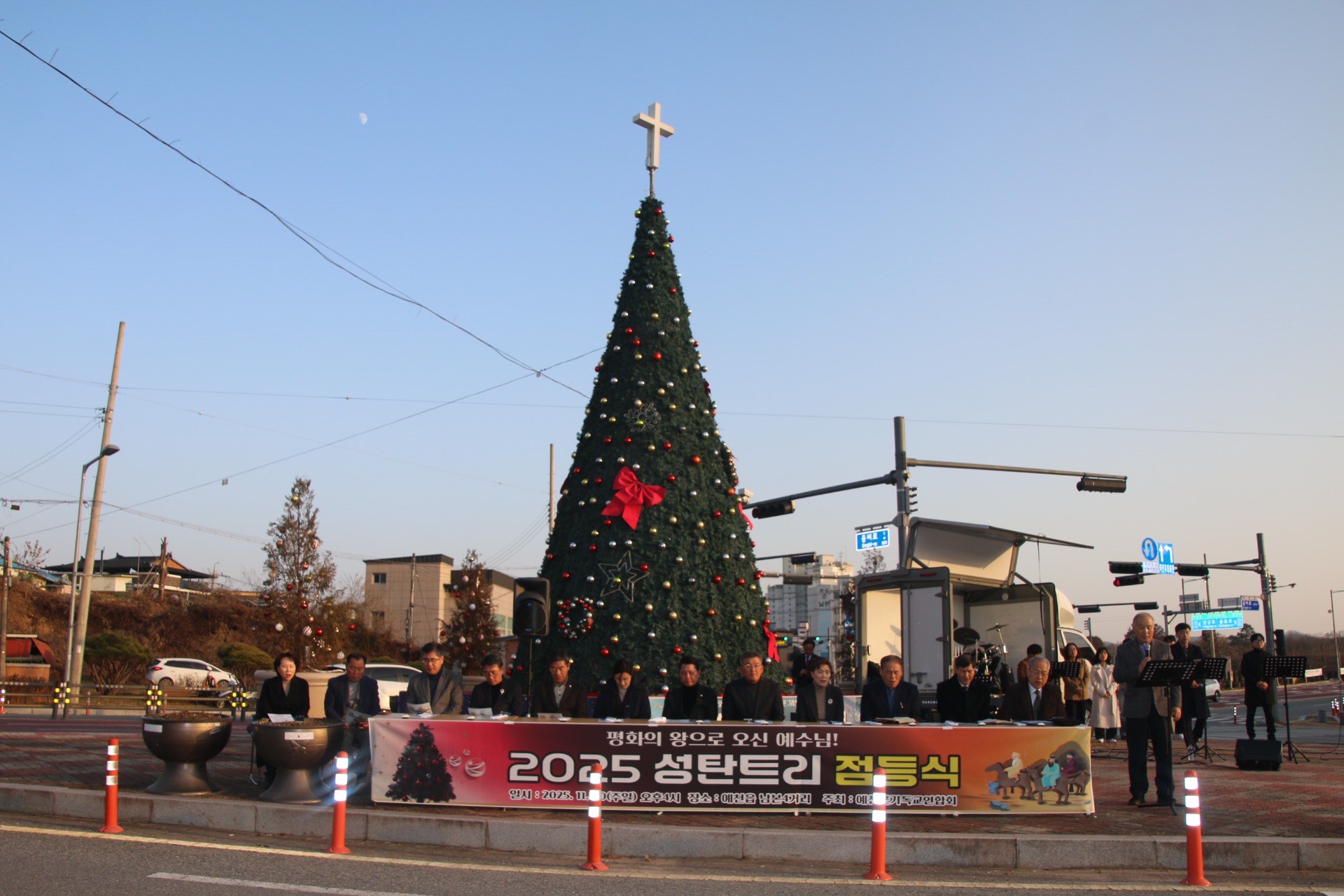 30일 예천군에 따르면 한 달여 앞으로 다가온 성탄을 앞두고 예천을 환하게 밝혀줄 성탄트리 점등식을 오후4시 예천읍 남본 사거리에서에 많은 주민과 기독교 연합회 회원들이 참석한 가운데 성대하게 열렸다.
