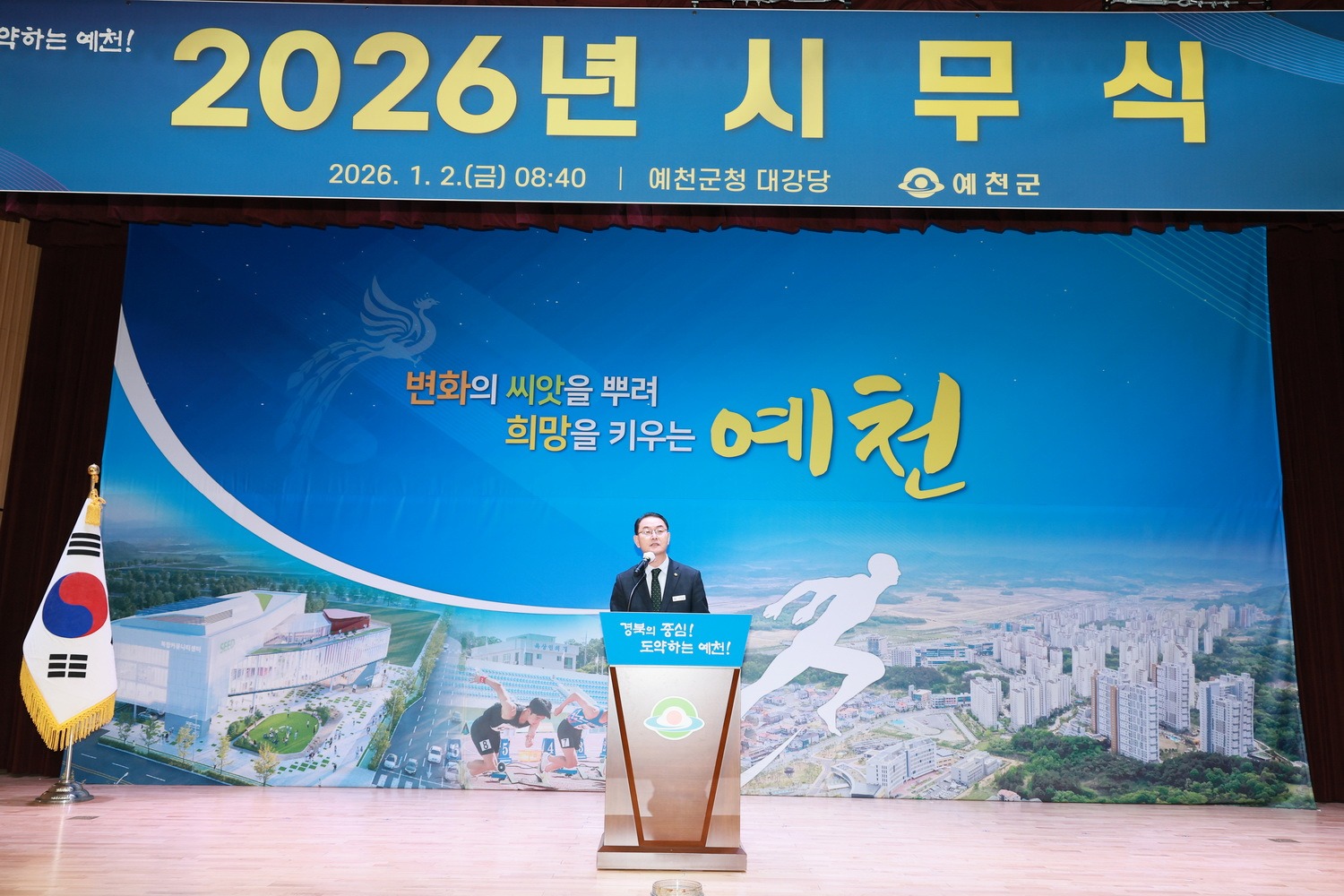 예천군(군수 김학동)은 2일 군청 대강당에서 ‘2026년 시무식’을 갖고 새해 힘찬 출발을 다짐했다.