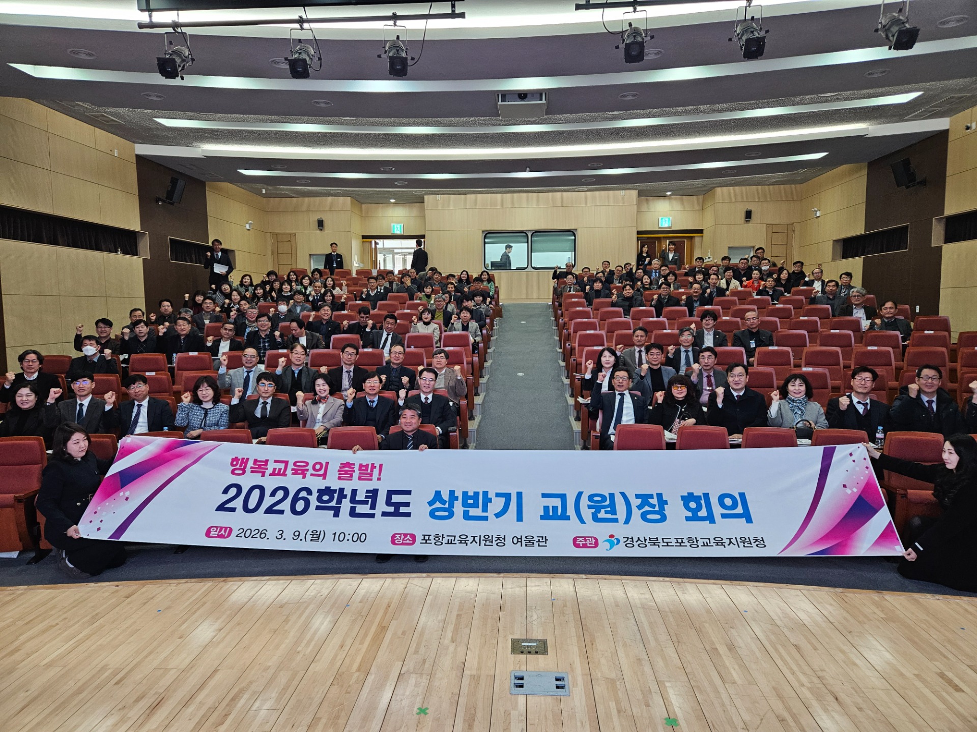 경상북도포항교육지원청은 3월 9일(월) 오전 10시 포항교육지원청 여울관에서 공립 유치원·초등학교·중학교·고등학교 및 특수학교 교장(원장) 130여 명이 참석한 가운데 2026학년도 신 학기 대비 상반기 교(원)장 회의를 개최하였다.