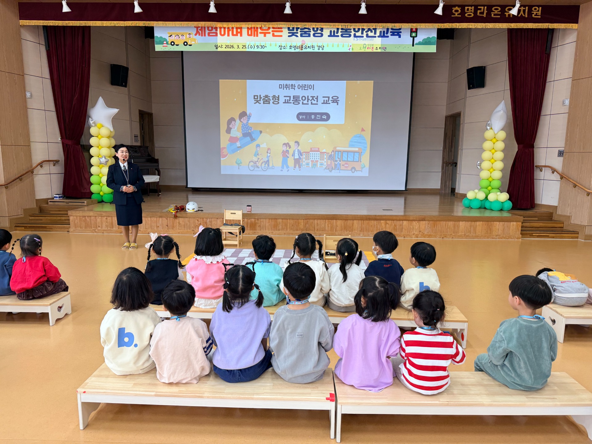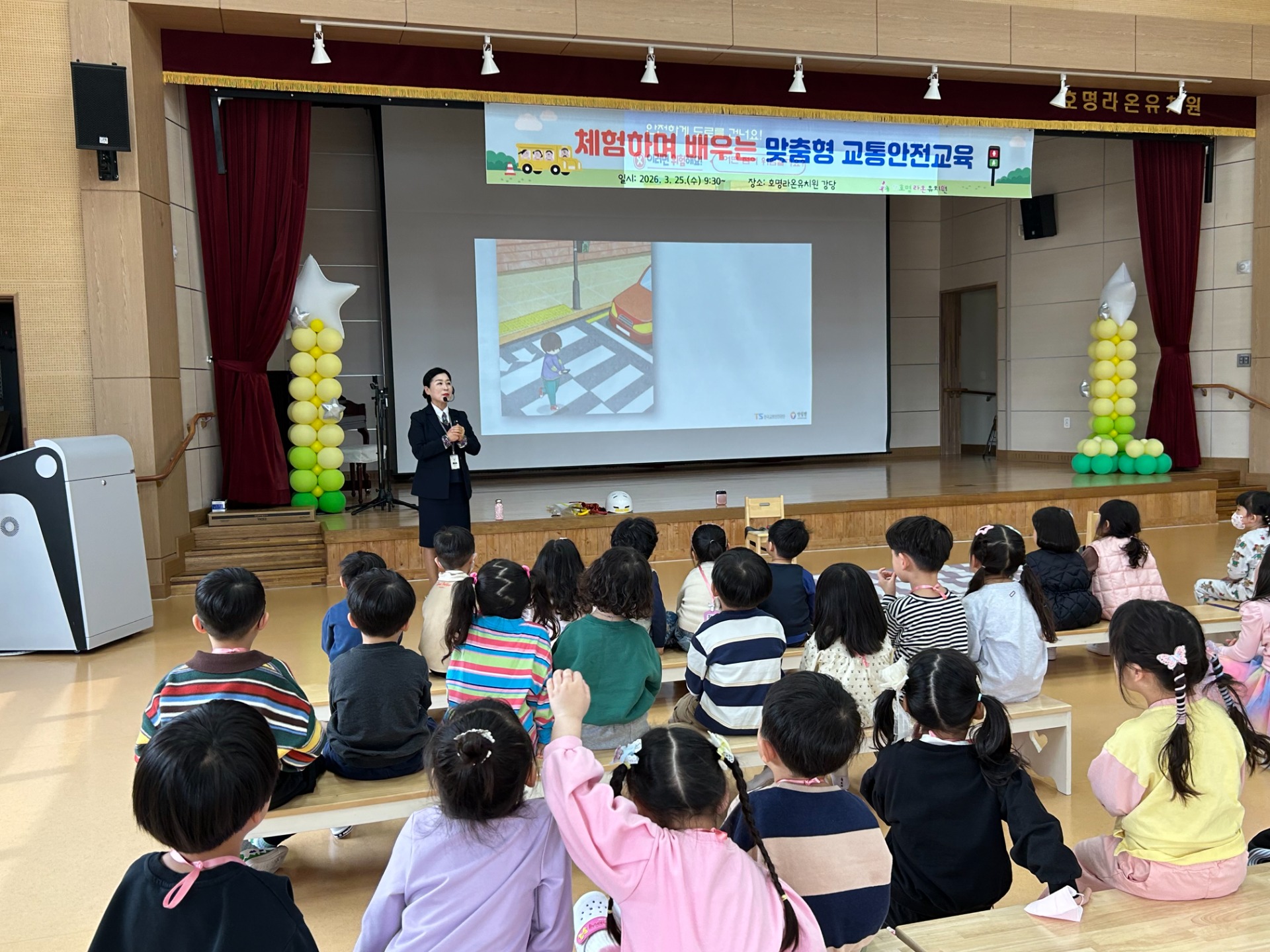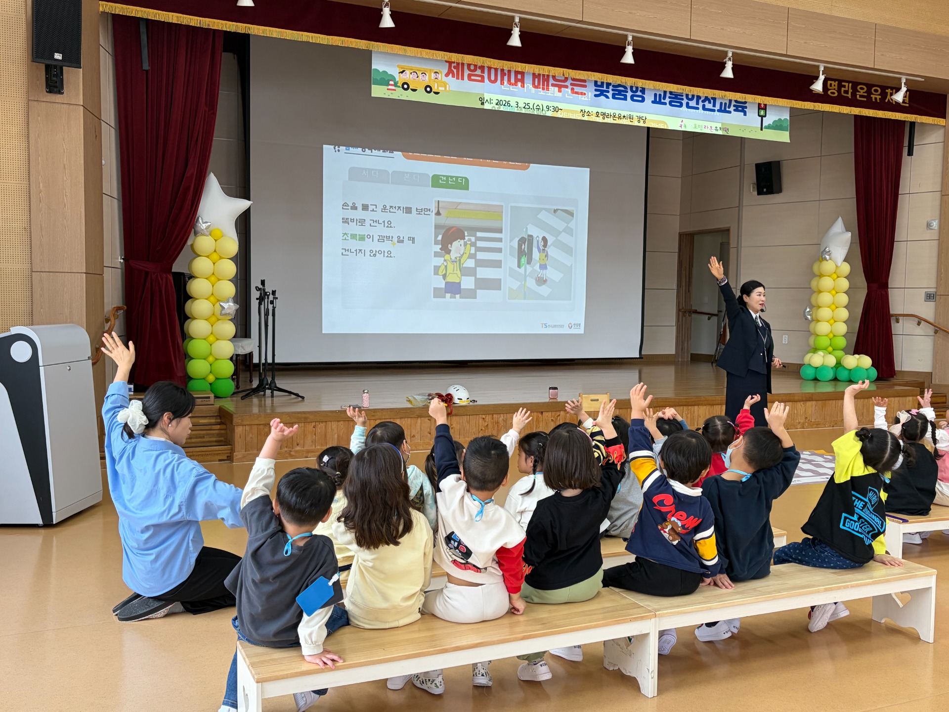 이번 교육은 유아의 발달 수준에 맞춘 체험·놀이 중심 활동을 통해 교통사고를 예방하고, 횡단보도 이용방법과 신호등 이해, 차량 승·하차 안전수칙 등 기본적인 교통안전 습관 형성을 돕기 위해 마련되었다. 또한 유아가 일상생활 속에서 스스로 위험을 인지하고 안전하게 행동할 수 있는 기초 역량을 기르는 데 중점을 두었다.