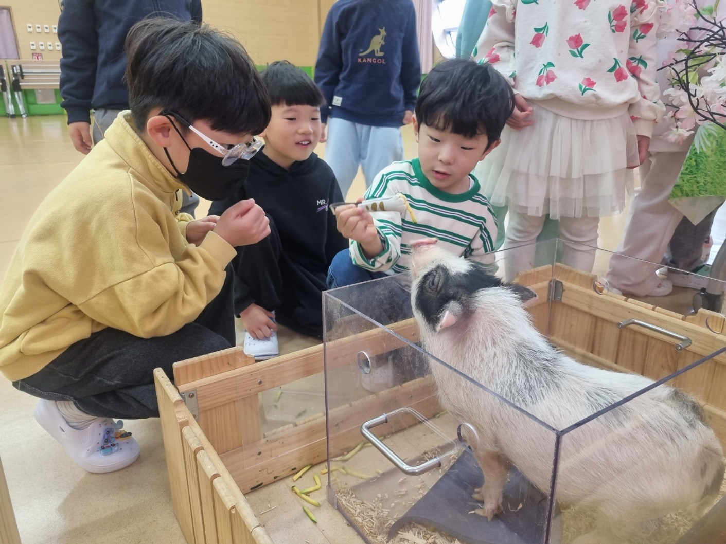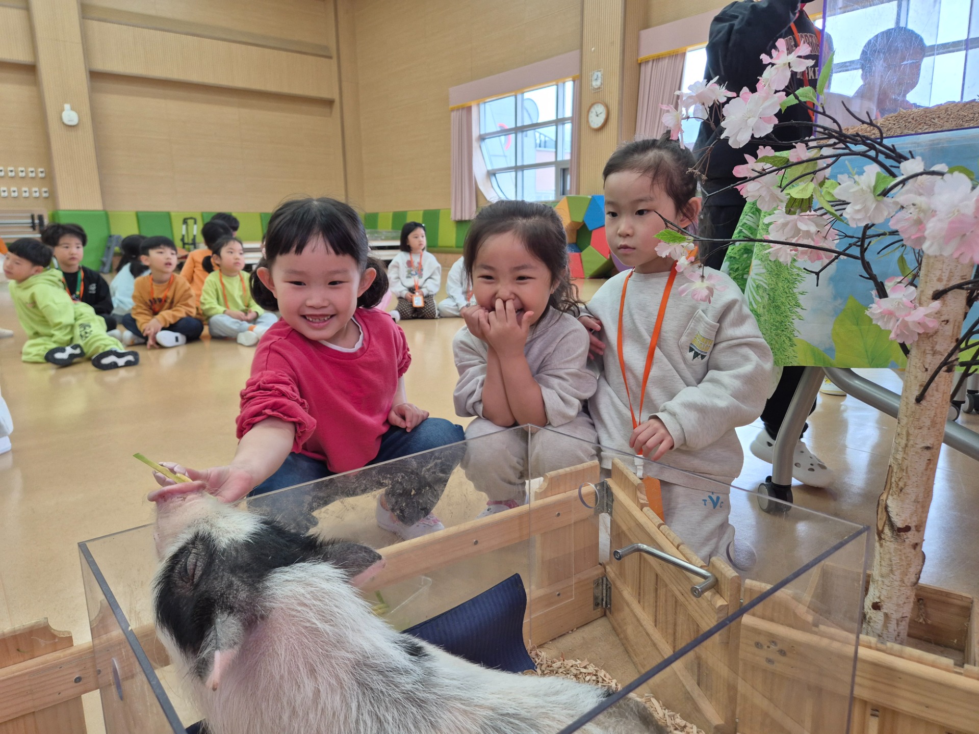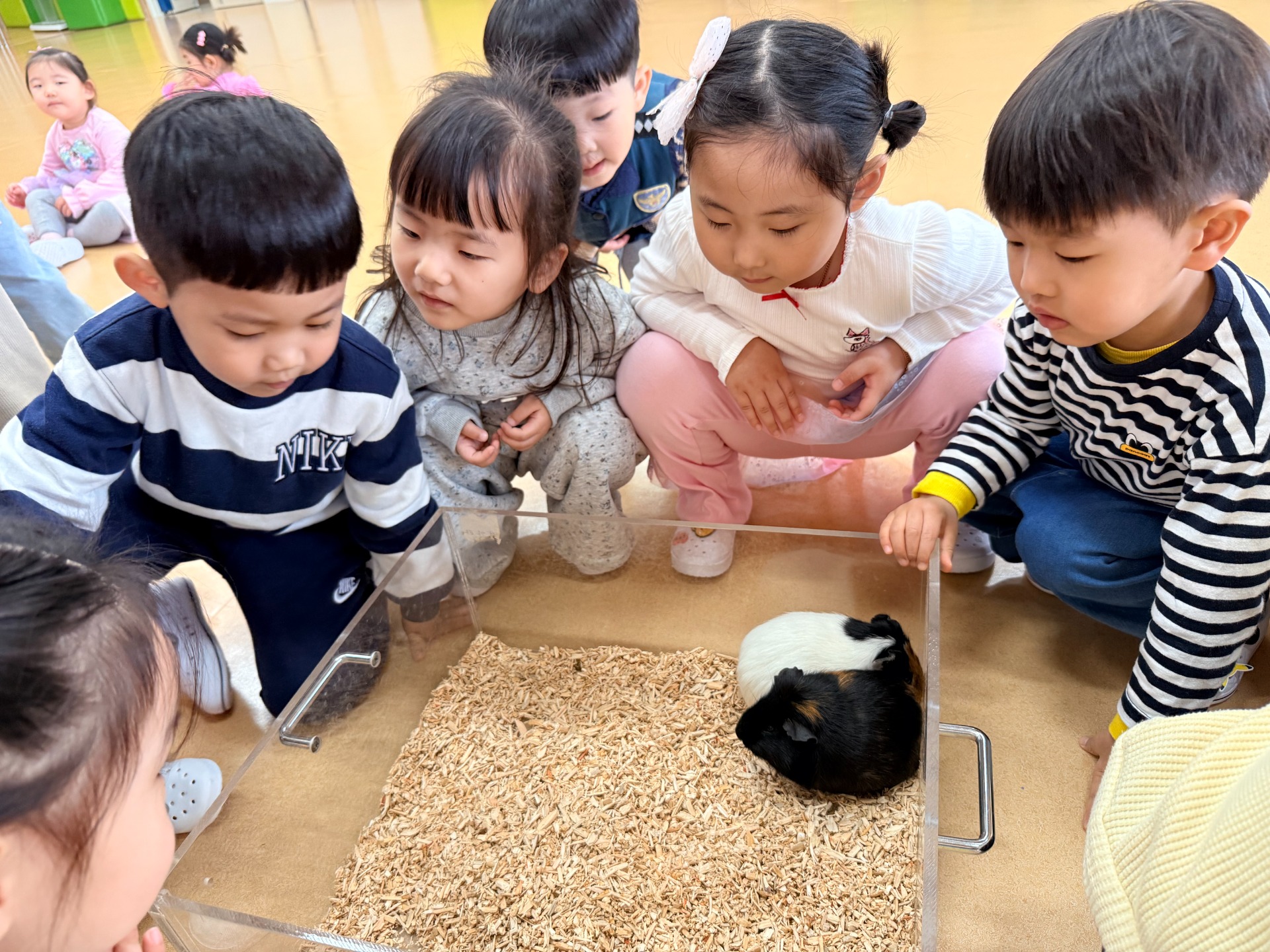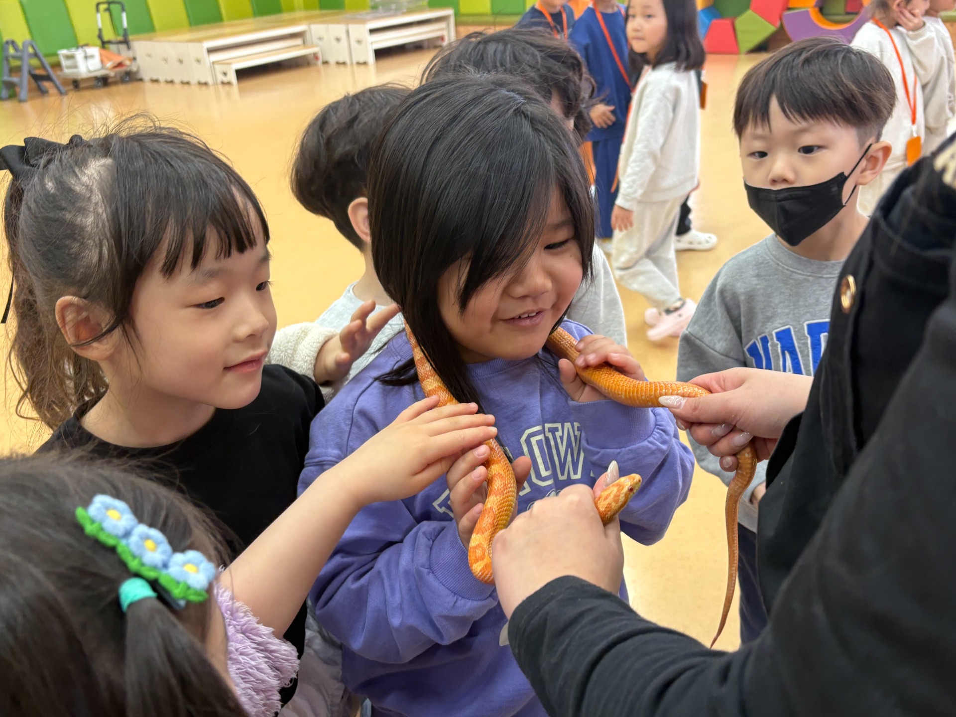 유아들은 미니피그, 롭이어토끼, 육지거북, 가고일게코, 골든햄스터, 버미즈, 실키닭, 팬서 카멜레온, 콘스네이크, 썬코뉴어 등을 차례로 만나며 생김새, 움직임, 먹이, 서식 환경 등 동물별 특성을 비교해 보았다. 또한 동물을 만질 때는 갑작스러운 행동을 삼가고, 동물이 불안해하지 않도록 눈높이를 맞추어 천천히 다가가는 등 배려하는 태도를 실천하며 교감 활동에 참여하였다. 활동 중에는 손 씻기와 손 소독 등 위생 수칙을 철저히 지키며 질서 있게 체험을 마무리하였다.