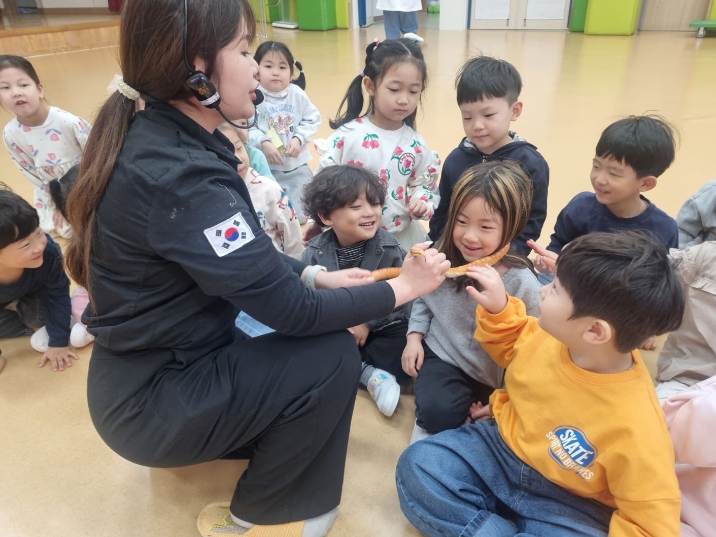 호명라온유치원(원장 우수경)은 4월 9일(목) 강당에서 전체 유아 179명을 대상으로 ‘찾아오는 동물 체험학습’을 운영하였다.