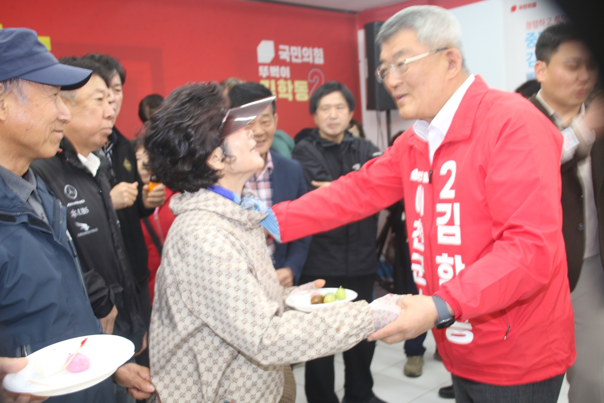 개소식에 앞서 김학동 예비후보와 부인 이미영 여사는 어렵게 발걸음을 한 지지자들과 일일이 악수를 나누며, 눈맞춤으로 감사의 인사를 대신해 훈훈함을 더했다.