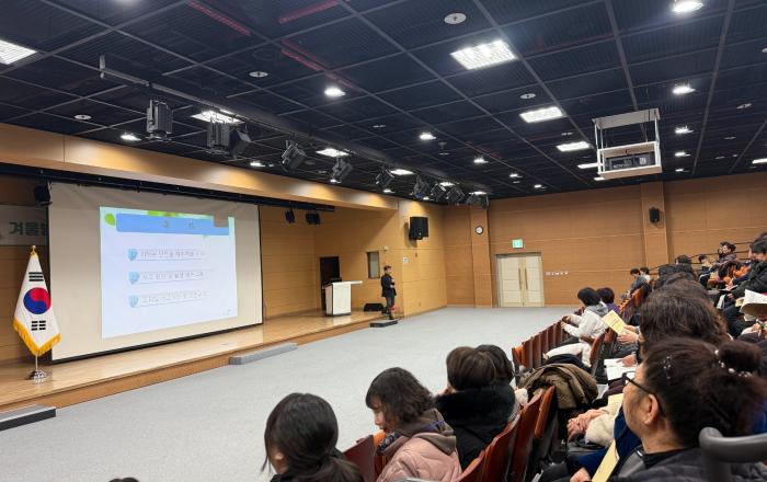꿈빛유치원(원장 김옥매)은 11월 26일(수) 유치원 강당에서 유치원 보호자를 대상으로 유⦁초이음 보호자 교육 및 마음 치유 프로그램을 진행했다.이번 교육은 초등학교 입학에 대한 학부모의 막연한 불안감을 해소하고 초등학교 생활에 대한 이해를 돕는 한편, 아로마 테라피를