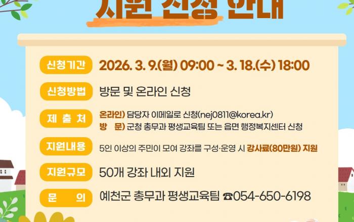 가족과 함께하는 희망 어울림 문화체험인 ‘150가족 행복 쌓기 캠프’는 150가족 538명이 참석해 청송의 8곳의 체험처를 방문 체험하며 아이들과 함께만드는 행복한 세상을 이뤘고 청송형 감성 키움,예체능.인문학 체험 프로그램으로 ‘청송사과 꽃 시 피움인 ’가을 숲 시화전‘을 열어 지역주민과 함께 화합하는 시간을 가지기도 했으며 2025 대학입시 설명회 및 내 고장 학교보내기를 초.중.고학생,교원,학부모 300여명이 참석학 가운데 비대면 온라인 유튜브로 생방송 하기도 했다.