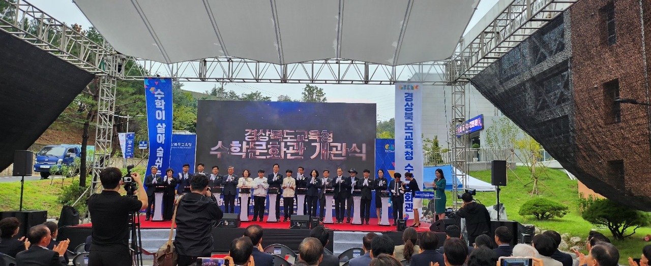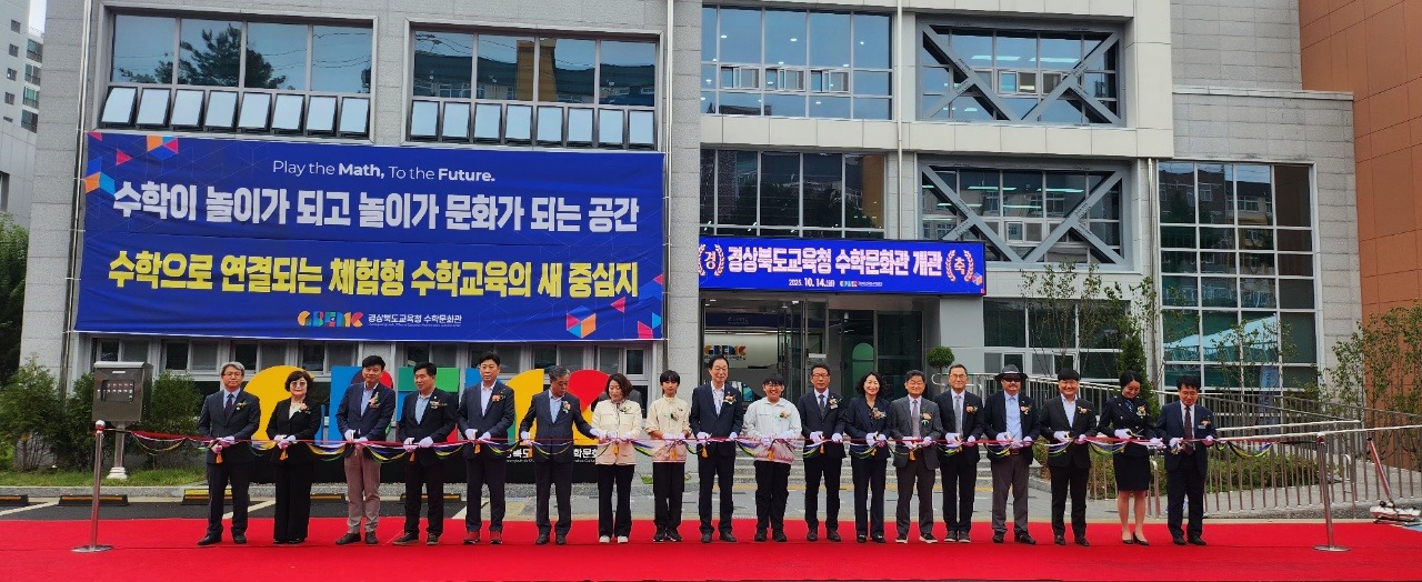경상북도교육청과학원(원장 진재서)은 10월 14일(화) 오후 2시, 경상북도교육청 수학문화관에서 개관식을 개최했다. 이번 개관식에는 임종식 경상북도교육감을 비롯해 경상북도의회 의원, 도내 기관장, 수학교육 관계자, 경북 학부모 대표, 포항 관내 학교장 및 학교운영위원장·학부모회장 등 200여 명이 참석해 경북 학생들이 수학을 즐기며 탐구할 수 있는 새로운 교육 거점의 출발을 함께 축하했다.