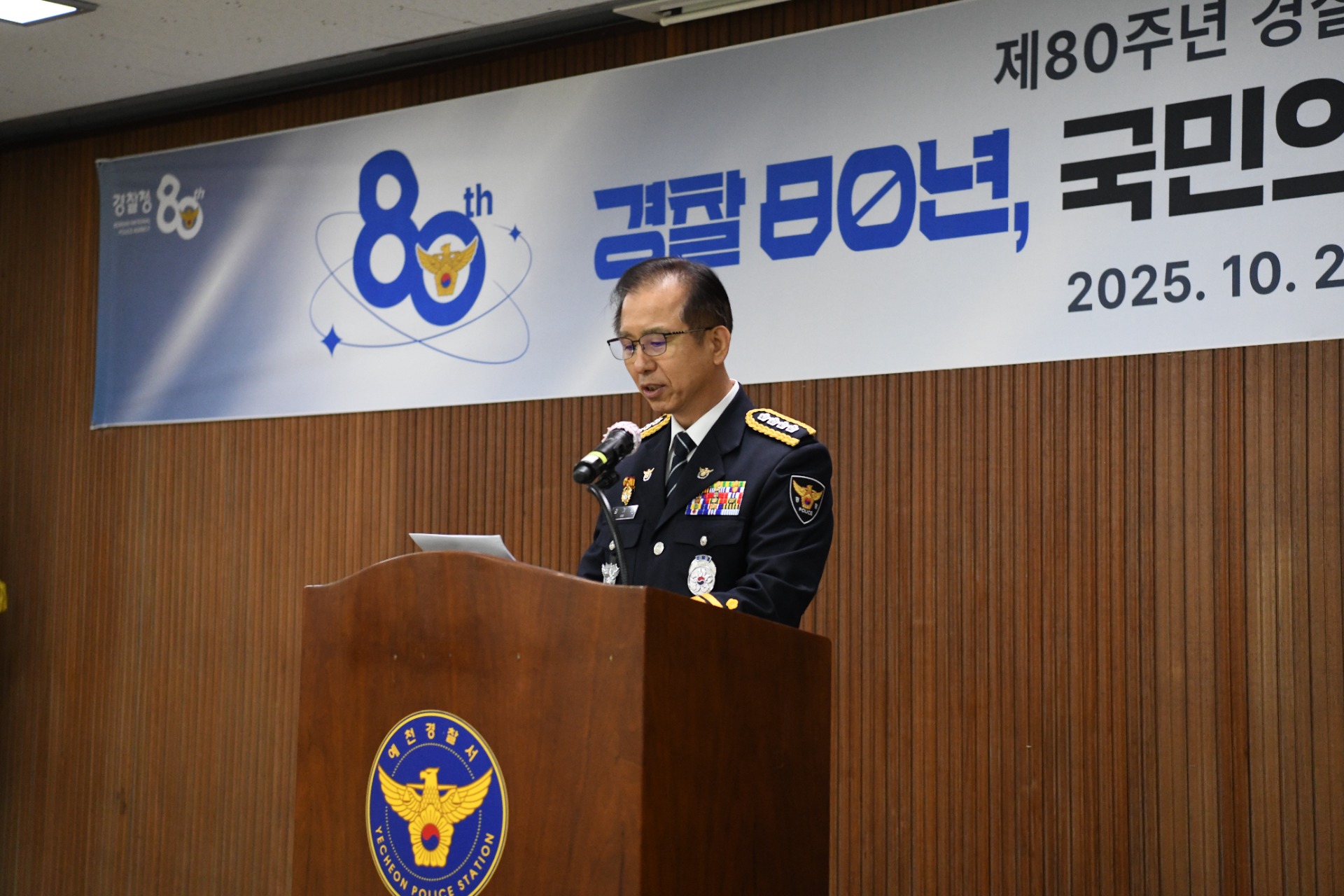예천경찰서(서장 김기태)에서는, 21일 오전 10시 3층 예경마루에서 제80주년 경찰의 날을 맞아 기념행사를 개최하였다.