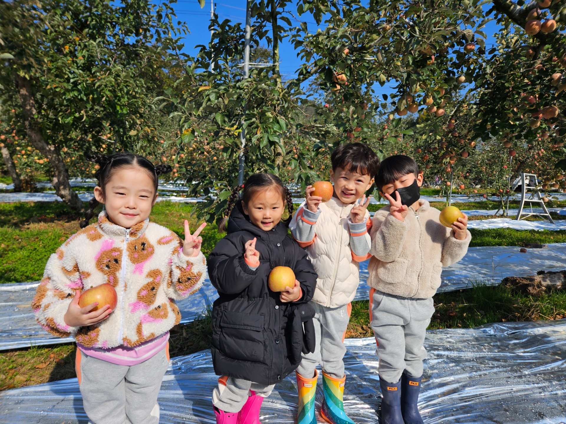 체험을 앞서 유아들은 사과의 성장 과정에 대해 알아보는 시간을 가지며, 사과의 생김새와 꽃, 열매에 대해 이야기를 나누었다. 농장에서는 사과를 직접 수확하고, 수확한 사과와 함께 사과파이, 사과주스를 맛보며  생생한 자연 체험을 즐겼다.