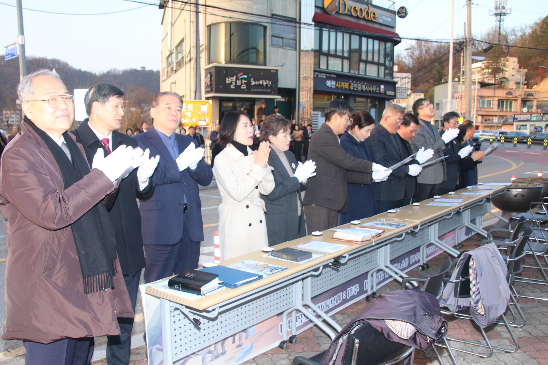 이날 점등식에서 예천군기독교연합회(회장 김한식 목사.풍성한교회)는 그늘지고 소외된 이웃을 위해 불우이웃돕기 성금200만원을 예천군에 기탁해 이웃사랑을 실천했으며 관내 모범학생 7명을 선발해 각 50만원의 장학금을 수여했다.