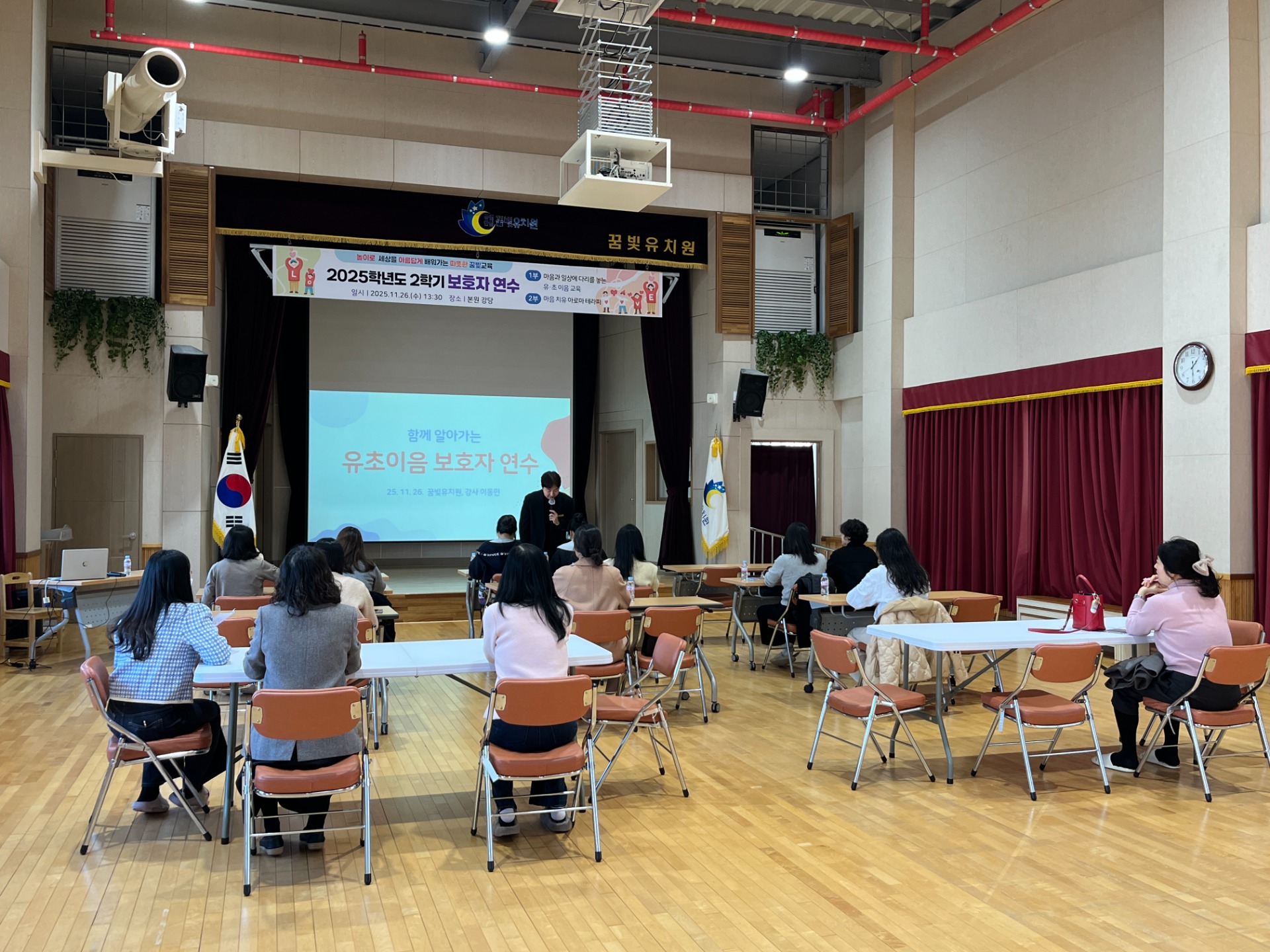 꿈빛유치원(원장 김옥매)은 11월 26일(수) 유치원 강당에서 유치원 보호자를 대상으로 유⦁초이음 보호자 교육 및 마음 치유 프로그램을 진행했다.