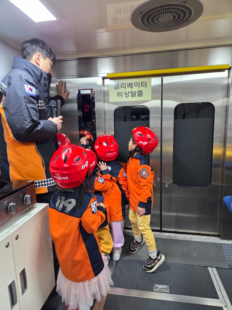 체험에 앞서 유아들은 화재 및 지진 발생 시 대처 방법에 대해 안전 동화를 시청한 후, 지진 체험, 승강기 비상 탈출 체험, 지하철 체험, 화재 연기 미로 대피 체험, 미끄럼틀 비상 탈출 체험을 진행했다.