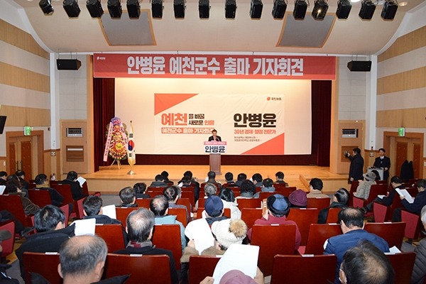 예천을 바꿀 새로운 인물 안병윤!!! "군수를 우리 손으로 뽑은 지 30년이 지난 지금, 예천은 유지와 관리의 단계를 넘어 새롭게 성장해야 할 시점에 서 있어 이제는 예천을 다시 설계할 군수가 필요합니다' 안병윤 전 부산시 행정부시장이 20일 오전 11시 예천군 청소년수련관에서 출마 기자회견을 갖고 예천군수 선거 공식 출마를 선언했다. 안병윤 후보는 "예천이 현재 경북 지역에서 1인당 지역내총생산(GRDP)이 가장 낮은 수준에 머물러 있다"고 강조하고 "이는 단순한 통계가 아니라 일자리 감소, 청년 유출, 지역경제 정체로 이어지는 구조적 위기를 보여주는 경고"라고 진단했다.