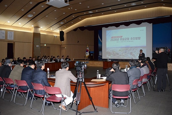 간담회는 김학동 군수와 관계 공무원, 언론인 50여 명이 참석한 가운데 2026년 군정 운영 방향 및 주요 사업, 정책 질의응답 순으로 진행됐다.