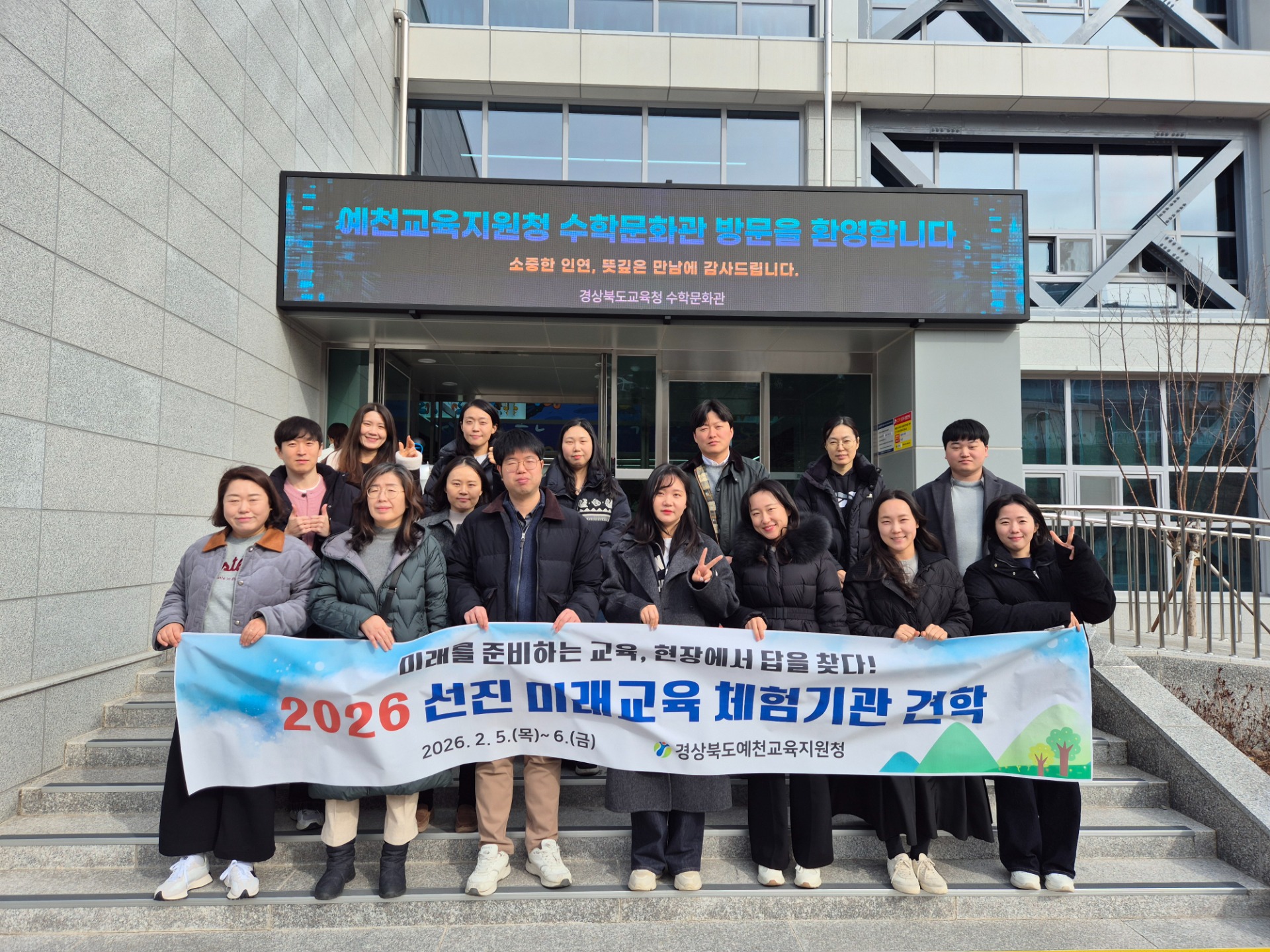 예천교육지원청(교육장 김성중)은 2월 5일(목)~6(금) 양 일간, 직원 50여 명을 대상으로 수학문화관(포항), 발명체험교육관(경주) 등 선진 미래교육 체험기관 견학을 실시하였다.