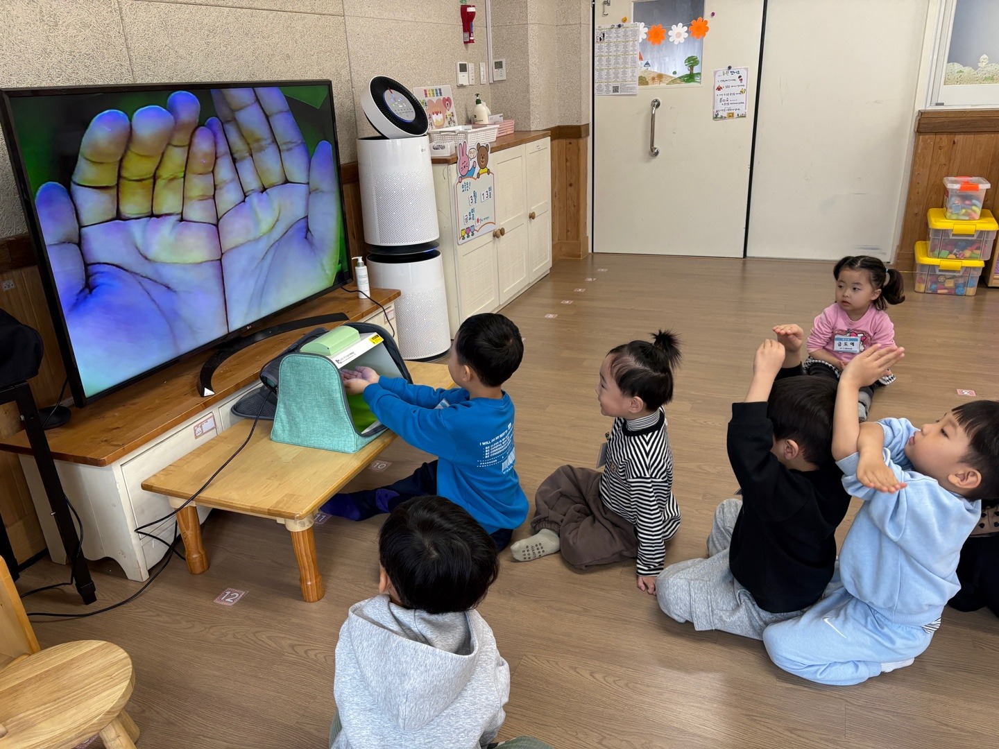 이날 교육은 이론적인 내용을 넘어 실제 생활에서 적용할 수 있는 방법으로 진행되었으며, 연령대별로 맞춤형 사후 활동을 통해 유아들이 습득한 위생 교육을 생활 속에서 실천할 수 있도록 했다. 손 씻기 교육기를 체험한 6세 유아 000은 “손을 깨끗하게 씻었는데도 손톱 아래에 세균이 많았어요. 앞으로는 손톱 아래를 더 깨끗하게 씻어야겠어요”라며 자발적으로 올바른 위생 습관을 형성하려는 모습을 보였다.