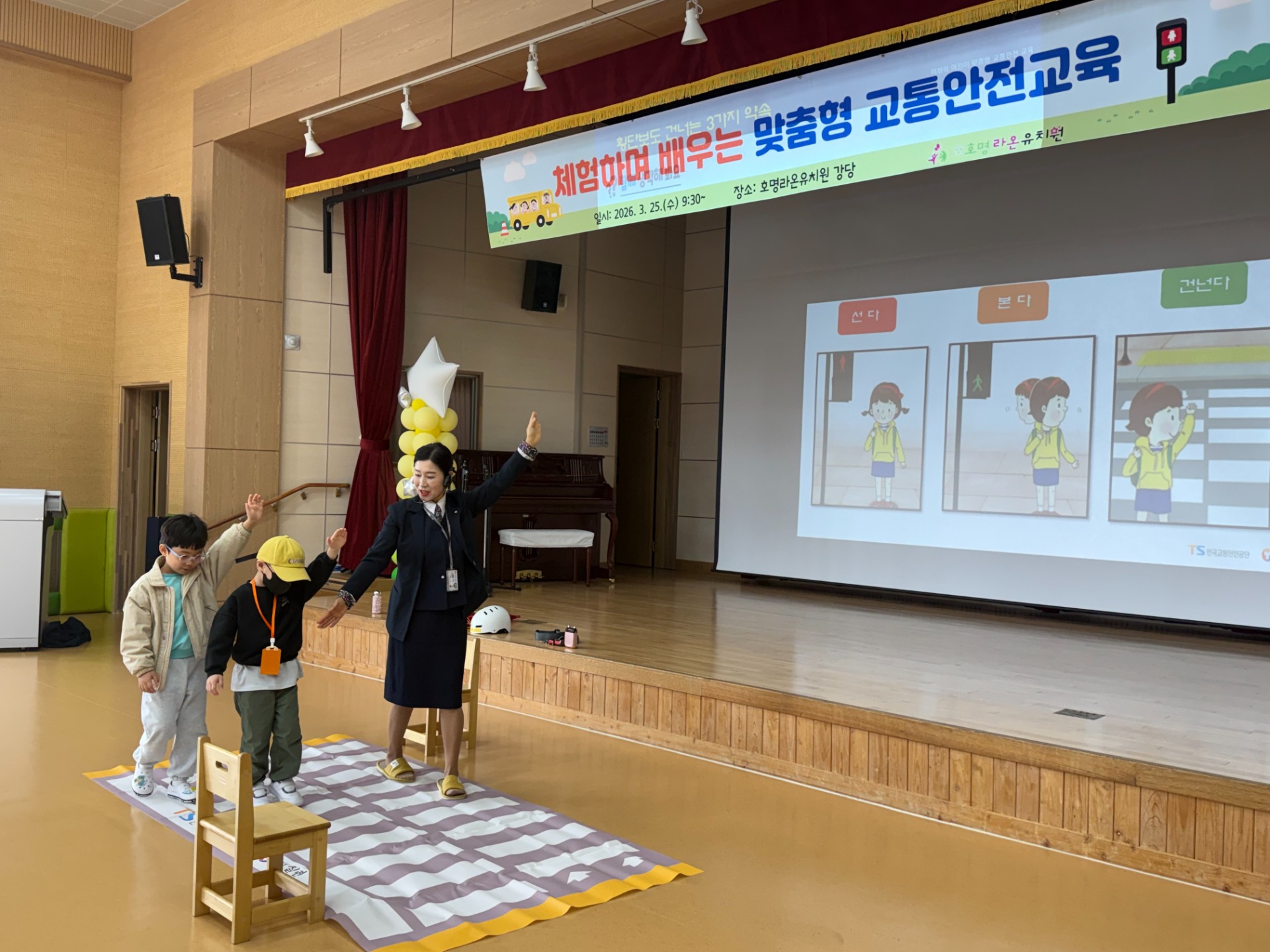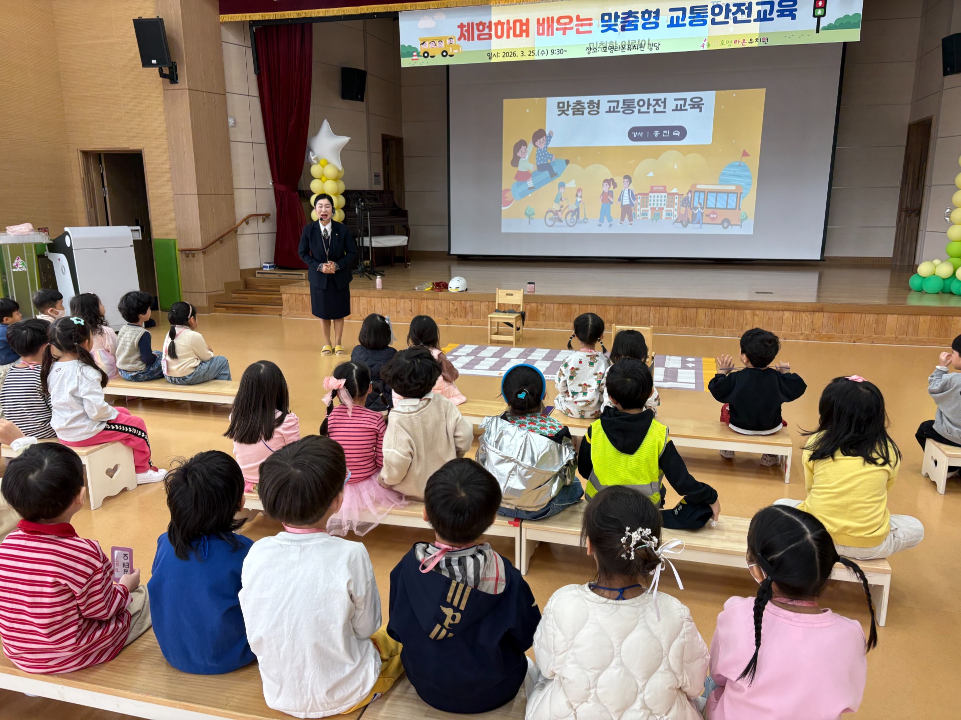 이번 교육은 유아의 발달 수준에 맞춘 체험·놀이 중심 활동을 통해 교통사고를 예방하고, 횡단보도 이용방법과 신호등 이해, 차량 승·하차 안전수칙 등 기본적인 교통안전 습관 형성을 돕기 위해 마련되었다. 또한 유아가 일상생활 속에서 스스로 위험을 인지하고 안전하게 행동할 수 있는 기초 역량을 기르는 데 중점을 두었다.