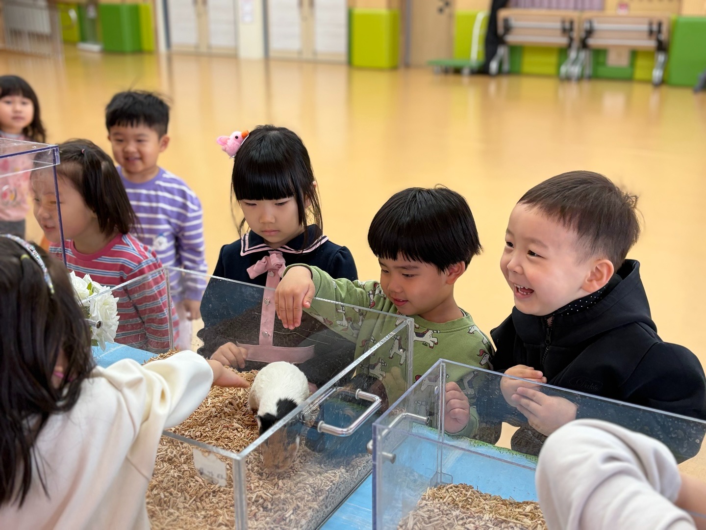 3세 000은 “거북이가 천천히 걷는 게 귀여웠어요.”라고 말하였고, 4세 000은 “햄스터가 작아서 더 조심해야겠다고 생각했어요.”라고 하였다. 5세 000은 “동물마다 사는 곳이 다르고, 우리가 함부로 하면 안 된다는 걸 배웠어요.”라고 하였다.