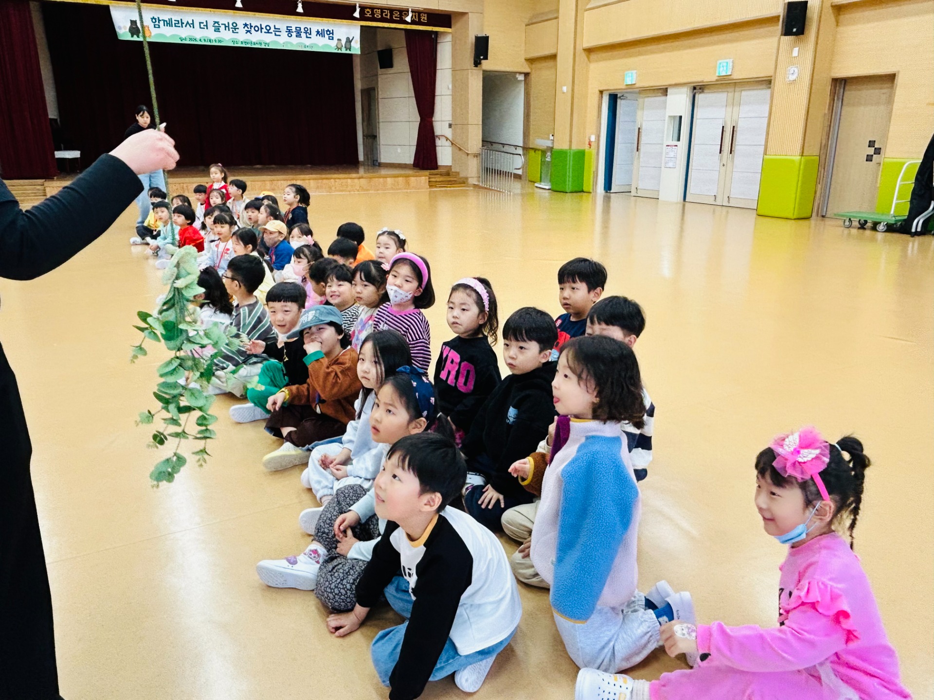 호명라온유치원(원장 우수경)은 4월 9일(목) 강당에서 전체 유아 179명을 대상으로 ‘찾아오는 동물 체험학습’을 운영하였다.